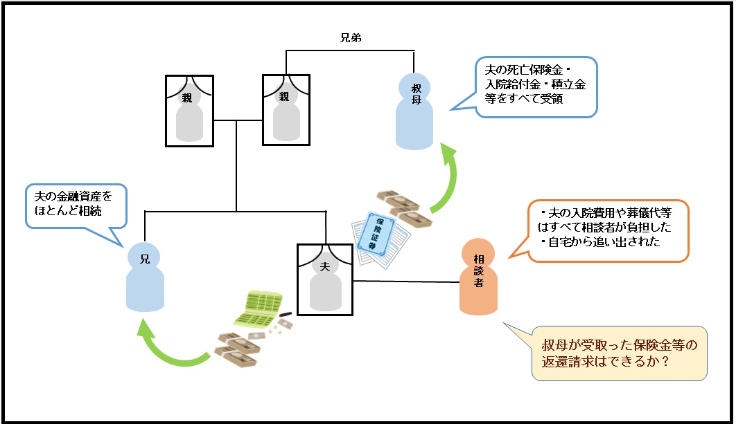 そのため、保険金は叔母の固有財産となり、相続財産ではないことから、相続人には何らの権利もなく、叔母へ返還請求することはできません。