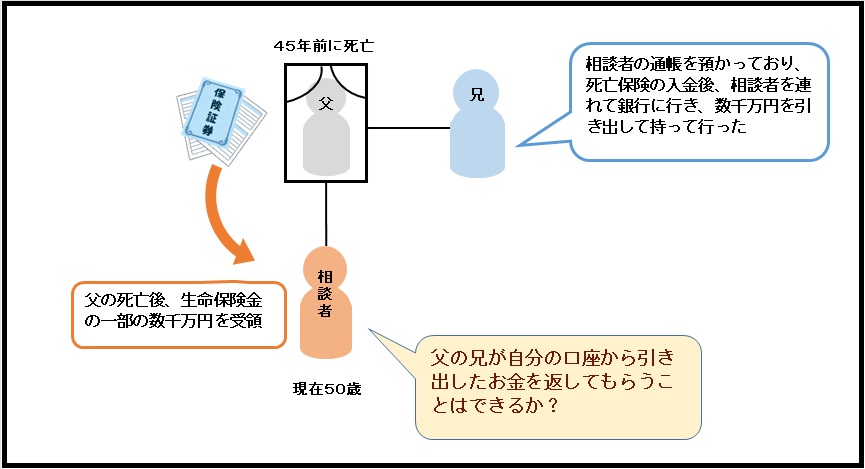 今回のケースでは叔父がいつ、保険金を出したのかは質問からははっきりとはしませんが、仮にその引き出し時点から20年以上が経過していると、叔父に対して損害賠償請求はできないことになります。